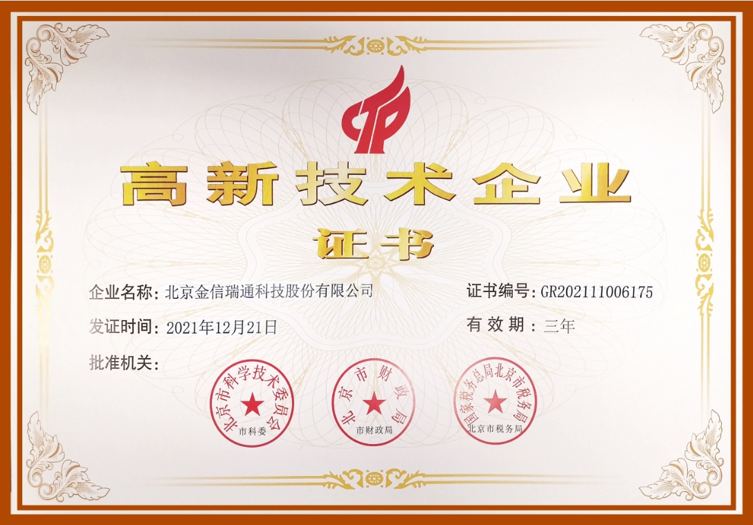 喜報:金信瑞通榮獲中關(guān)村高新技術(shù)企業(yè)稱號并獲得多項5G軟...